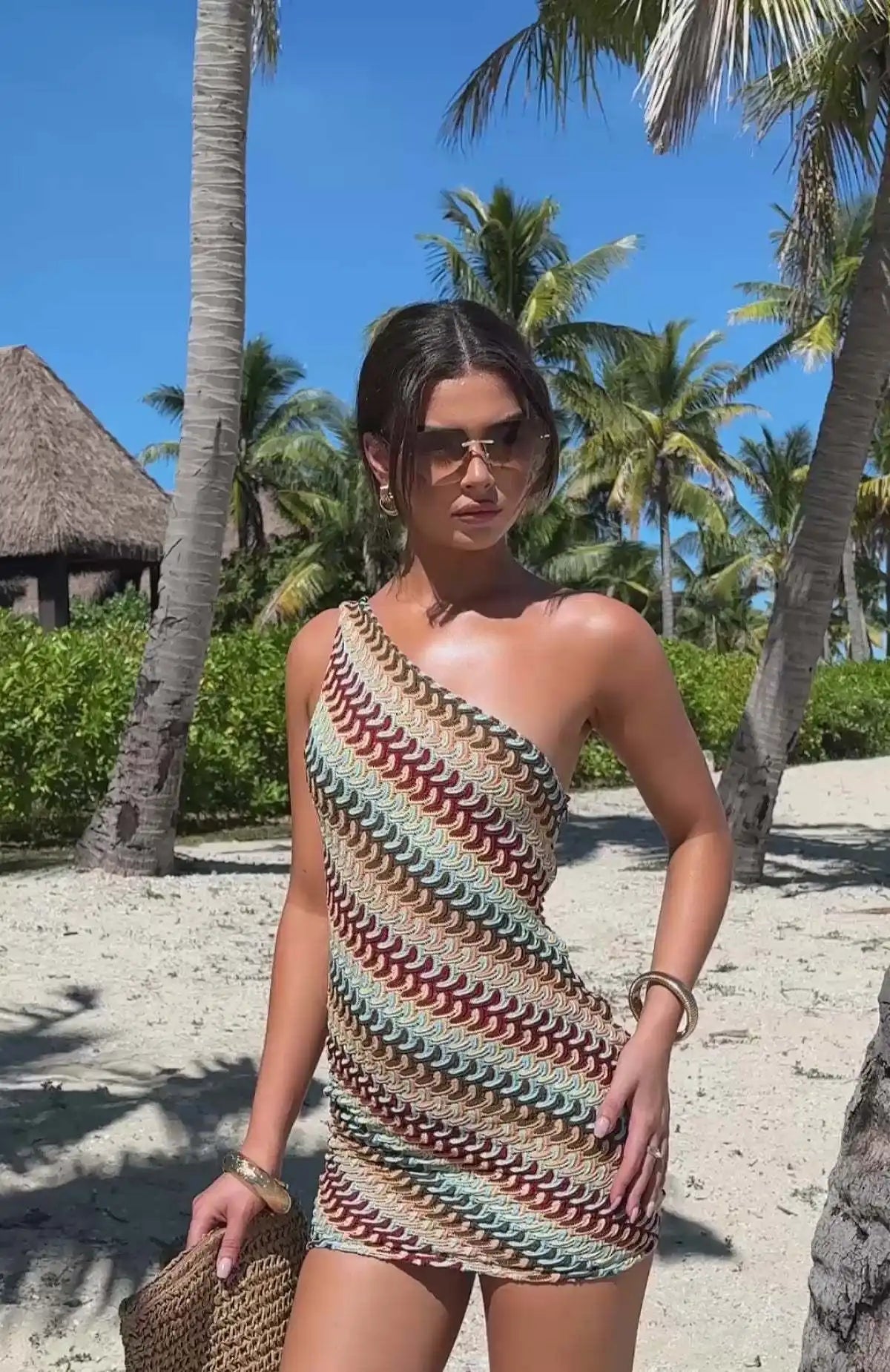 Que ce soit pour flâner en bord de mer ou siroter un cocktail au soleil, cette mini robe de plage à une épaule est votre meilleure alliée. Légère, sexy et facile à enfiler sur un maillot, elle combine effet portefeuille et motif rayé tendance pour un look chic sans effort.